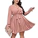 Show Your Feminine: The plus size short dress's style is deep v neck long sleeve a line short dress, elegant and sexy. Together with the design of lantern sleeves and waist belt, there is a good effect of covering meat, showing your slim figure and feminine silhouette