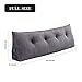 SIZE: Full size, 54x8x20 Inches, the large triangular pillow's length is as long as the mattress's width,alternative as a headboard.You can lean on any part of the headboard comfortably without moving pillow. ★NOTE: As the backrest is shipped compressed, please remove the vacuum bag,shake vigorously for 5 minutes, and allow 48 hours for the pillow to restore its original fluffy.
