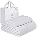 Care instructions – this beautiful white weighted blanket is pre-washed and packaged plastic-free, ready to use immediately. Machine washable and tumble dryer safe at 110°F as needed. Do not wash with other items. On the road? Travel in style with the duffle bag included!