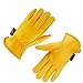 Extra durable, heavy-duty & long lasting premium gold color cowhide work glove. 100% genuine grain cowhide, Shrink resistant and flexible. It is generally known that cowhide is the best leather for abrasion resistant work gloves. Made from carefully selected high-quality thick cow leather which is not only thick and durable, but also soft and flexible with moderate oil resistance, puncture resistance and cut resistance.
