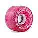 This roller skate wheel comes in glitter pearl pastel colors; Cherry Blossom Pink, Tickle Blue, Pearl White, and Misty Teal. But in the dark, they have a luminous neon glow