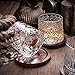 Spinning Old Fashioned Whiskey Glasses: Our whiskey glasses set includes 4 different types of drinking glass with wood coasters,where glasses can be rotated in a balanced manner without causing the wine to overflow. Every glass cup has a stylish personality and a beautiful appearance. The outstanding design makes the glass more shining.