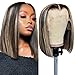 【Highlight Bob Human Hair Wig Materia】100% Unprocessed Glueless Lace Front Human Hair Wigs, Cut from Brazilian Virgin Girl Directly. Full and Thick, Soft and Bouncy, No Shedding, No Tangles, Can be Restyled, Curly, Dyed, Permed, Durable, Reusable, Last for Long