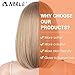 【NOBLE Stylish Honey Blonde Bob Wig with Brown Roots, Not Too Shiny】Synthetic bob lace front wigs for women. Yaki straight hair style and natural necked-in end, with NOBLE multilayer modelling skill, making the ombre brown bob wig stereo and vivid. Super soft and comfortable.