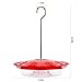 Large Capacity Hummingbird Feeder: Features 26 Ounce nectar glass container, durable ABS plastic base with 5 red flower-shaped feeding ports, wire hanger included.