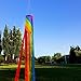 Yard Spinners: These yard decorations feature a classic rainbow design; colors featured on each of the garden spinners include green, red, blue, yellow, orange, and pink
