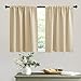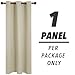 Package Includes: Set of 2 beige blackout curtains; Each panel measures 42 Inch wide by 63 Inch long.
