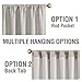 Basic Information: 2 LINEN PANELS in 1 package. Each panel measures width 52 x 96 length. 3-Way Hanging Options: Hang these curtain panels (1) using the back loops to create an elegant pleated effect, (2) from the 3 inch rod pocket for a classic look, or (3) using clip rings for easy, slide open and closed (clip rings are not included)