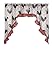 Cottage curtains for a cozy kitchen. This 3-piece kitchen curtain set features an artful rooster print and ruffled burgundy border. Matching window valance has an uneven length with cascading ends