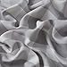 100% cotton, black mini stripes on a natural cream base. Reverses to super soft voile fabric, inner lining is flannel. Machine wash separately, front load commercial washer, cold water, gentle cycle, no chlorine bleach, tumble dry low or line dry and air fluff, do not dry clean.