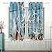 【PACKAGE CONTENTS】2 coastal blue teal coral panels printed window curtain in the package. Each panel measures 52 "W x 84 "L (132x213cm).Each panel has 8 silver metal grommets, the inner diameter of the grommet is 1.6(4cm) inches and fits well with standard or decorative curtain rods.