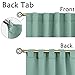 Package Includes: Set of 2 frosty green blackout curtains; each panel measures 42 Inch wide by 63 Inch long, with 6 back tabs and 3” rod pocket fits most standard rods and makes the maximize coverage of windows.