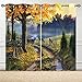 Anhope Deer Curtains Grommet Light Filtering Window Drapes Oil Painting Theme Fall Wildlife Whitetail Deer Elk Print Pattern Decorative Privacy Curtains For Bedroom Living Room 2 Panels 52 X 84 Inch