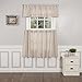 Woven light taupe ticking stripe on antique white base; Lined with white cotton; Hem fold; Machine stitched; Single fabric. Tiers pictured with Farmhouse Ticking Valance, not included.