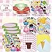 Ice Cream Theme for DIY: printed with 2 or 3 ice cream patterns for each sticker, this mix and match decal is full of the elements of ice cream, embellished with fruits, jelly beans, hearts, stars and others, helpful to develop children's creativity and imagination to DIY as they like, practical items for gifts or games