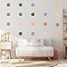Includes 42 Neutral Circle Dots Decals - Discover your imagination and design your walls to your unique look. Each decal is individually cut for you to arrange the perfect setting in your home or classroom. Stagger the colorful decals on a large wall and create a custom accent wall! Each sticker measures 3" diameter. The neutral color dots pack includes 42 polka dot stickers.