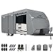 MATERIAL: Thick 7-ply top use resistant non-woven fabric and breathable polypropylene material prevent RV trailer from bird waste, dust and scratch, Meanwhile, it provides good air permeability and blocks the ultraviolet ray to protect your RV from burning sun of summer, windproof, waterproof, snowproof, upgraded anti-uv ability increased by 25% then ordinary cover. And it's also the best RV Covers for winter and snow!