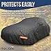 UV Heat Protection & Scratchproof: UV protector and heat reflective layer prevents interior & exterior damage. Unlike plastic tarp, the use of non-abrasive light cotton makes your auto dust proof.
