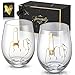 HIGH QUALITY : The gold letter stemless wine glasses is easy to clean and hold with curved body and rounded rims can prevent spills and splashes, easy to hold and can give you a comfortable grip. In order to maintain the printing bright and durable, it’s better to wash it by hands.