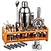 Premium Bar Kit - This cocktail mixer set is made of high quality 304 stainless steel metal with exquisite smelting technology, not easy to corrode or rust. It owns a smooth and shiny surface which makes it looks very textured. And the Bartender stand is made of natural environmental protection bamboo, which makes the stand safe and healthy. Due to the material, cocktail making kit is easy to clean.