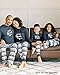 Get your whole family holiday card ready with these festive pajamas that feature several different patterns including light grey polar bear, dark grey bear paw, and blue winter animals