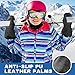 Wear-resistant Leather Palm & Touch Screen Function: The goatskin leather palm is of great wear resistance, tear resistance and suppleness, which provides enhanced grip and maximum dexterity. The fingertips area covered with conductive leather allows touch screen response to pick up call or take pictures, working well with your smartphone and other smart devices.