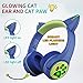 [VIBRANT LED CAT EARS] Every design reveals cuteness. Riwbox CF9 is a kids Bluetooth wireless headphones with LED lights and cat ears. It has a robot-style appearance element. The two cat ears are LED lights with RGB three colors, and the two sides of the headset cat's claw look are also illuminated. With 360°rotate microphone in cute cat's claw/fish appearance. LED embedded can blink and changes color with the rhythm, long press the M button to turn off the LED light to save more power.