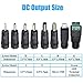 DC OUTPUT JACK SIZE: A 6.5*4.4 mm, H 5.5*3.0 mm, D 5.5*2.1 mm, E 5.0*1.7 mm, F 4.8*1.7 mm, 4.5*3.0 mm, G 4.0*1.7 mm, J 4.0*1.35 mm, L 3.0*1.0 mm. Note: Please confirm the above DC interface size, whether it includes the corresponding DC interface size of your device.