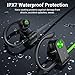 IPX7 Waterproof: With IPX7 waterproof rating, nano-coating technology efficiently prevents rainwater and sweat from penetrating and damaging wireless headphones' sensitive components, keeps going in all weathers and through all workouts.