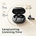 [Durable Battery and Easy Charge] The battery is durable and within about 1-2 hours the earbuds and the charging case can be refilled with USB-C charge. With 8 hours per charge of listening time and another 2.8 recharges can boost up your enjoyment up to 30 hours by the charging case. It can be used for several pupose daily and weekly for studying, commuting, workout, leisure hours, etc. (Note: Not active noise cancelling earbuds and not support wireless charge)