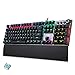 RGB ILLUMINATED KEYBOARD: The mechanical keyboard has built-in advanced RGB mode and surrounds light bar mode. Somebody can adjust 17 kinds of RGB backlight effects, 5 kinds of preset game lighting modes, 19 types of light side effects, and light speed and brightness. The super multi-light way is enough to light up the entire keyboard.