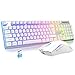 [Mechanical Feel Keyboard] Lighted keyboard features a mechanical feel design with a feel between the green and red switch and offers an ultra-quiet sound experience, ideal for gaming and office use. It is also a full size backlit wireless keyboard with an Fn key combination for easy access to multimedia keys, adding convenience and effective productivity during use. The metal top and ABS double shot injection moulded non-fade keycaps give this white keyboard a practical and durable character.