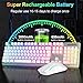 【Rechargeable & Long Battery Life】The keyboard is equipped with a 3000 mAh battery, and the mouse is equipped with an 1000 mAh battery. The long battery life allows you to use them continuously for 75 hours with light. The keyboard and mouse are equipped with smart energy-saving functions. If there is no operation within 2 minutes, they will automatically go to sleep, press any key to wake them up. Please charge 8 hours before using.
