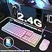【Wireless RGB Backlit Keyboard】The rechargeable gray & white gaming keyboard is more interesting than monochrome keyboard. Thick and sturdy matte shell, the sides of the keyboard can shine. The real RGB keyboard can adjust different backlight modes and switch 8 kinds of monochrome backlight. You can also adjust the brightness and breathing speed of the backlit according to your preference, These modes will give you more enjoyment when you gaming or typing at night.The USB receiver in the back of the keyboard for additional portability.