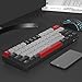 Full anti-ghosting keyboard: all 68 keys are no conflict, black grey red mash up design, ergonomic suspension double-color injection keycap, double kickstand feet adjustable typing angle and detachable usb cable, both practical and beautiful.