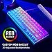 【RGB-BACKLIT MECHANICAL KEYBOARD】19 Backlit Effects,enjoy a more immersive, colorful typing and gaming experience.Support commonly used game mode button backlight and custom recording key backlight function,Double-shot injection molded keycaps, It provides transparent and transparent backlight and letters. It is very durable and will not scratch. The perfect mechanical keyboard for office or home use. Mini mechanical keyboard WITHOUT separate number gaming keypad