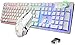 ▶【Metalic Backlit Keyboard Full of Science Fiction】Unlike some plastic wired or wireless keyboards on the market,the frame of this up-market white keyboard and mouse set is dominated by white and gold-metallic solidity,made in a cool shape to symbol the look into the future.Warrior worn metal armor may have made the gamers feel safer,it's also very attractive for science fiction and fantasy fans.the bright lights would take players into rainbow world where gamers feel most futuristic!