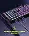 Up to 200 Hours of Battery Life: Use the keyboard for many days thanks to its integrated rechargeable battery and save on disposable ones. This light-up keyboard with 10 Dedicated multimedia keys and 12 shortcut keys is ultimately gaming performance and has a water-resistant function, you don't have to worry about spilled liquids damaging it.