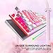 MIXED-COLOR DOUBLE-SHOT KEYCAPS: The keycaps are a mix of gray and white/white and pink, not a monotonous solid colour. With Double-Shot process, the suspended keycaps are wear-resistant, durable, and will not fade. The membrane construction produces a soft sound with every keystroke, far quieter than that of a noisy mechanical keyboard, providing a comfortable typing experience. The ergonomic high-low layout and adjustable stands help you reduce hand fatigue after prolonged use.