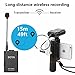 [Superior Sound Quality]: Wireless lavalier microphone system receives crystal clear sound and then transmits it to your smart phone or camera through UHF digital wireless technology. The recorded sound is processed by noise cancelling to restore high fidelity, and the 0s delay transmission range is 80-100 feet. UHF digital can provide a stronger signal which reducing the interference of Bluetooth or WiFi