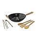 Set Includes: 14" Coated Wok w/Wood Handles - Half Moon Rack - 13" Cooking Chopsticks - 12" Bamboo Food Tongs - 12" Cooking Spoon/Paddle - 12" Cooking Solid Turner - 12" Cooking Spatula