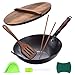 WHAT YOU WILL GET - Wok with wooden lid and 5 accessories gifts: wooden spatula, chopsticks, silicone heat resistant pinch mitt, silicone oil brush, scrub sponge.