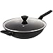 【Perfect Size & Multi-Purpose】 Perfect Size: 13"W and 3.5"D. This extra large size wok pan with lid can serve at least 3-5 people of food portions, perfect for family use and gatherings with friends. The nonstick wok can be utilized for a variety of cooking methods, such as stir-frying, deep-fried, boiling, steaming etc. The flat bottom wok is suitable for all types of stoves: induction, electric, halogen, gas.
