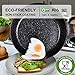 【Non-stick & Easy to Clean】Eco-friendly Granite Coating, natural stone material, 100% PFOA free, no lead or cadmium. Imitating the texture of Marble stone, very durable surface. Great non-stick effect allows it easy to clean. The non sticking frying pan is designed with scratch resistant interior without peeling off or rust for healthy cooking. Little oil or butter using for healthy diet and easier cook a wonderful meal.