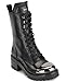Features: Lug sole boot, lace-up, combat boot, with an ankle buckle, and and a pull tab on the heel