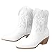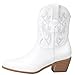 The white Cowgirl ankle boots are made of vegan leather combined with stylish minimalist embroidery work, a traditional Western heel, a cushioned insole with a soft lining, a non-slip rubber sole, and a 2-inch heel height.