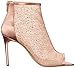 Peep toe mesh bootie with zipper closure on counter
