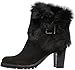 Round-toe boot featuring voluminous asymmetric faux fur cuff with buckled strap at side