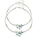 Adjustable Anklet for Women and Teen Girls, Turquoise and Sterling silver Beaded Ankle Bracelet with Hawaii Plumeria Flower, Handmade Unique Boho Hippie Beach Foot Jewelry by Tribes