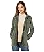 This anorak jacket for women features: adjustable waist with drawstring, full zip up and snap button closure, anorak jacket with hoodie, two front pockets, long sleeve, relaxed fit.